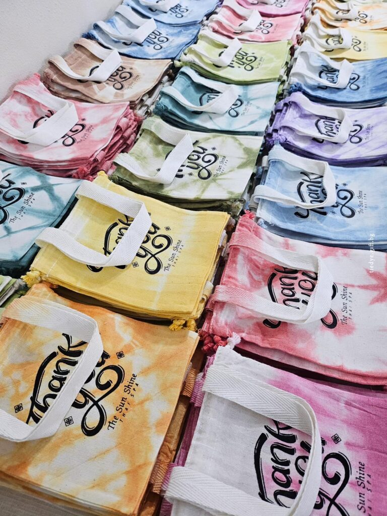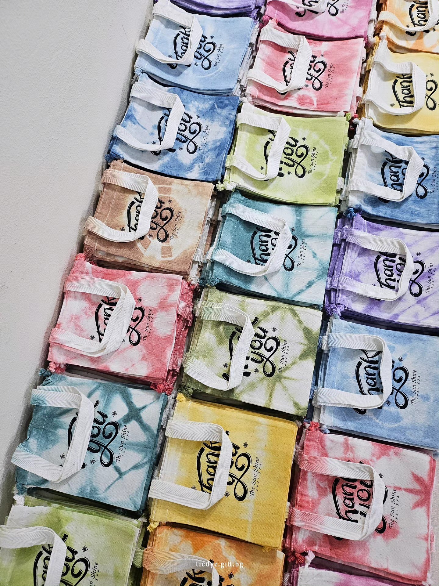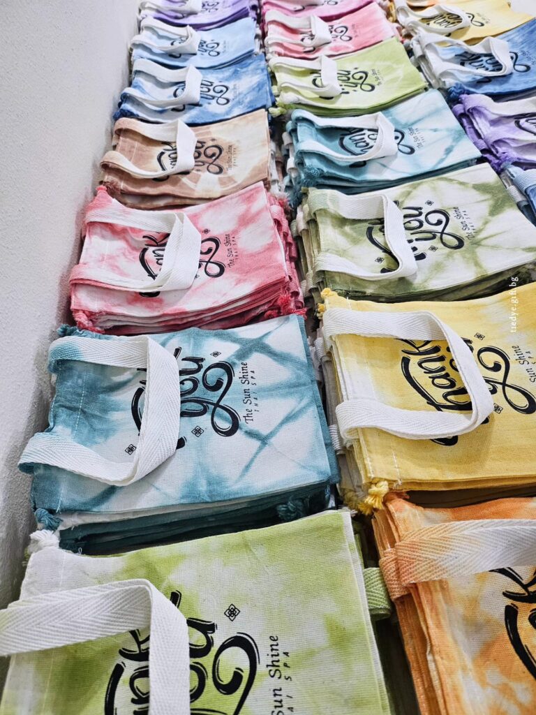 ถุงผ้า ของที่ระลึก ของแทนคำขอบคุณ | ถุงผ้ามัดย้อม ที่มีหลายขนาดและสีมัดย้อมที่มีให้เลือกมากถึง 25 สี พร้อมรับงานสกรีนโลโก้ สกรีนแบรนด์สินค้า ที่ช่วยเพิ่มมูลค่าแบรนด์สินค้า กระตุ้นการขาย สร้างภาพลักษณ์ของแบรนด์ให้เป็นที่จดจำ หรือ จะใช้เป็นของขวัญในการจัดในโอกาสพิเศษได้