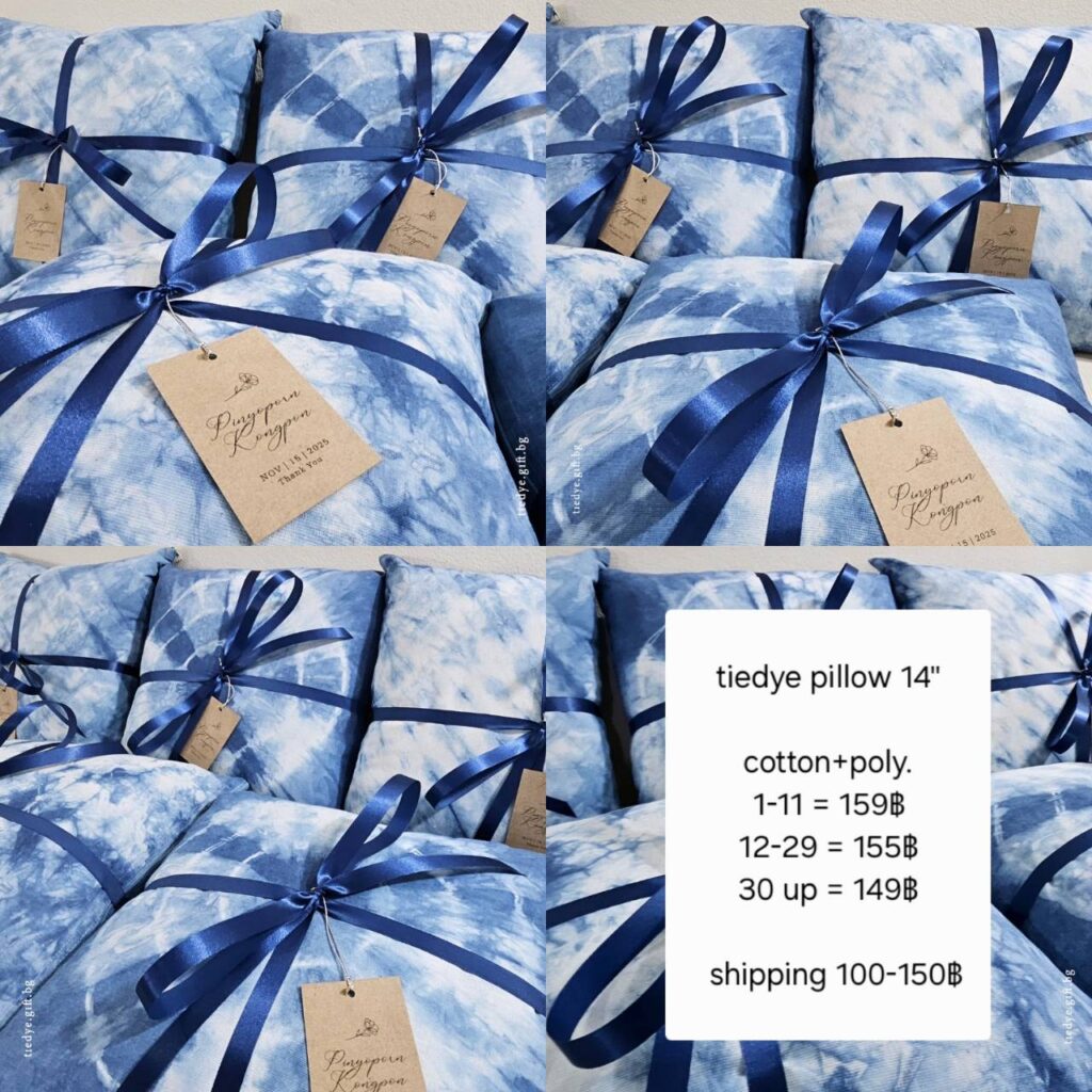 หรือจะเป็นงานถุงหิ้วแก้ว ,งานกระเป๋าถักน่ารักๆ ที่มาจากเชือกฝ้าย จุ่มย้อมคราม, หรือจะเป็นหมอนผ้าฝ้ายมัดย้อม งานสวยๆ สื่อถึงเอกลักษณ์ของไทย ยังเป็นงานไอเดียสวยๆ ไม่ซ้ำใคร ซึ่งในส่วนของปลอกหมอนจะสามารถถอดได้นะคะ ทางร้านทำเป็นแบบซิป เรียกได้ว่าสวย สะดวก ใช้งานได้จริง หากสนใจ ก็สามารถสั่งผลิตได้เลย