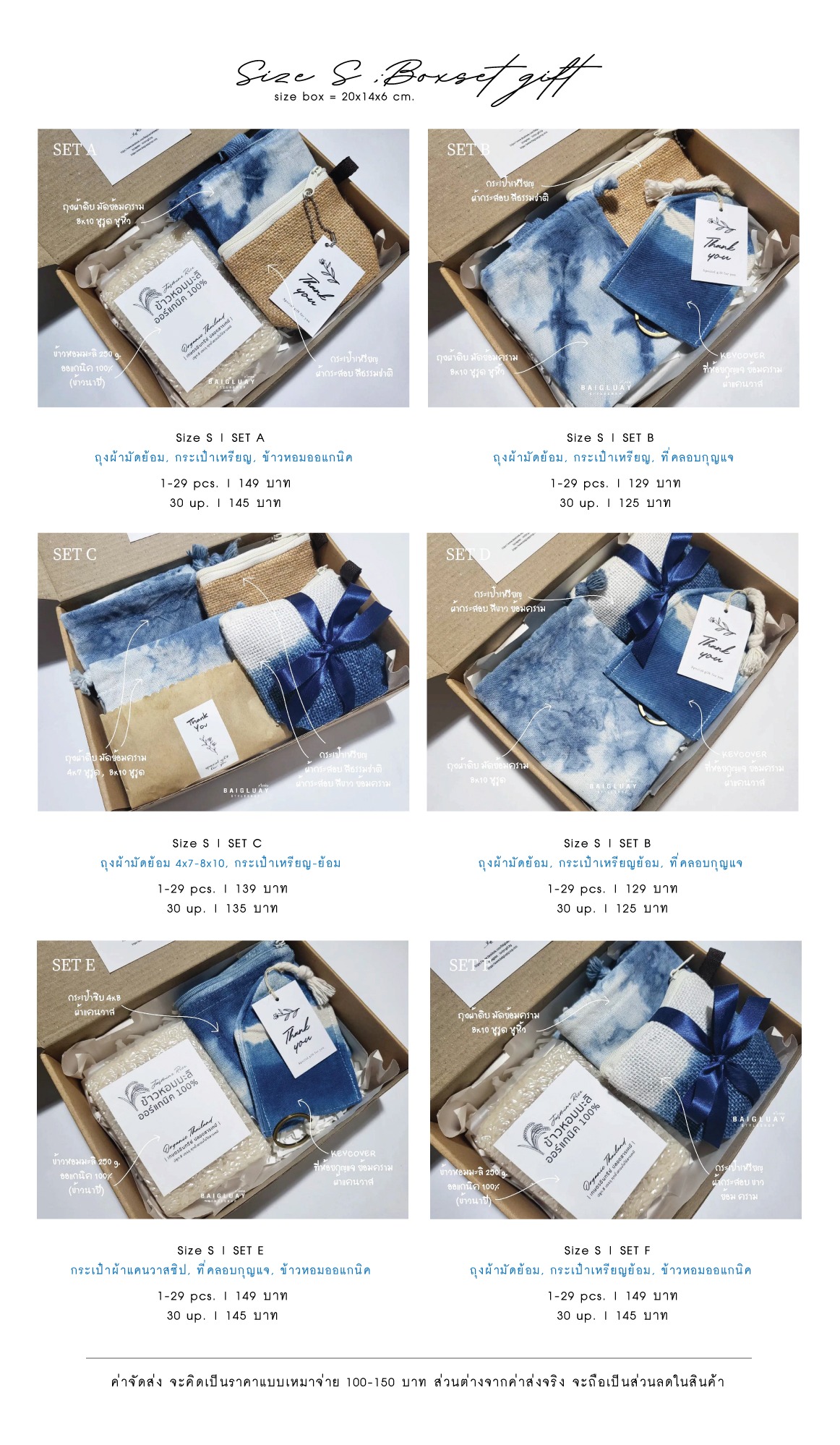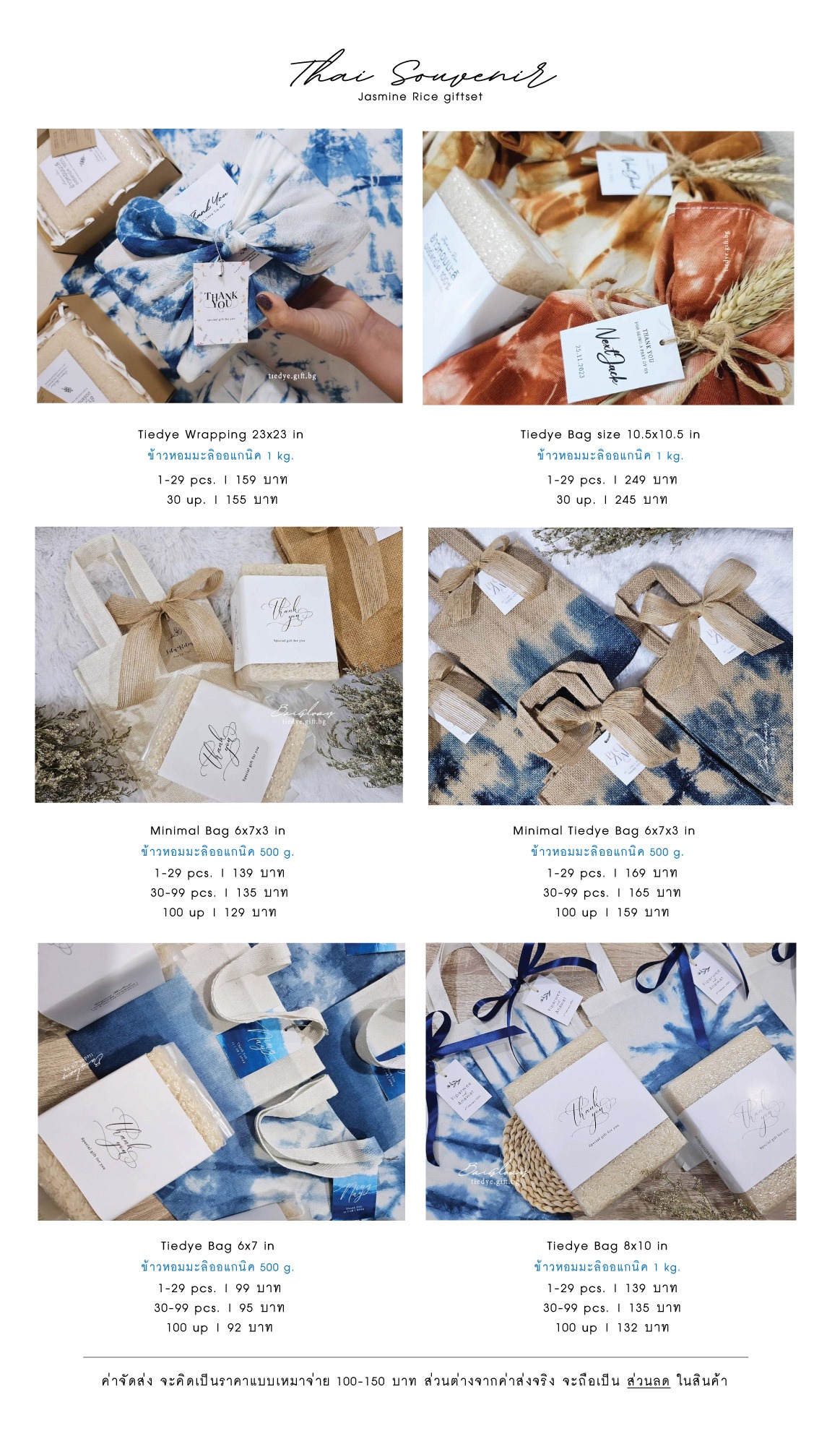 ของรับไหว้ ชุดเซต งานทำมือ สีสันจากงานมัดย้อม งานเก๋ ไอเดียไม่ซ้ำใคร ใช้ประโยชน์ได้จริง สื่อความหมายมงคล พร้อมแพ็คเกจน่ารักๆ จากทางร้าน ใช้ได้กับงานแต่งหลายแบบ หลายสไตล์ ไม่ว่าจะเป็นงานแต่งมินิมอล งานแต่งโมเดิร์น งานแต่งในสวน งานแต่งริมทะเล งานแต่งสไตล์ไทย ล้านนาน อีสาน หรือจะเป็นสไตล์เรียบหรู ก็สามารถมิกซ์แอนท์แมทซ์ให้เข้ากับงานได้