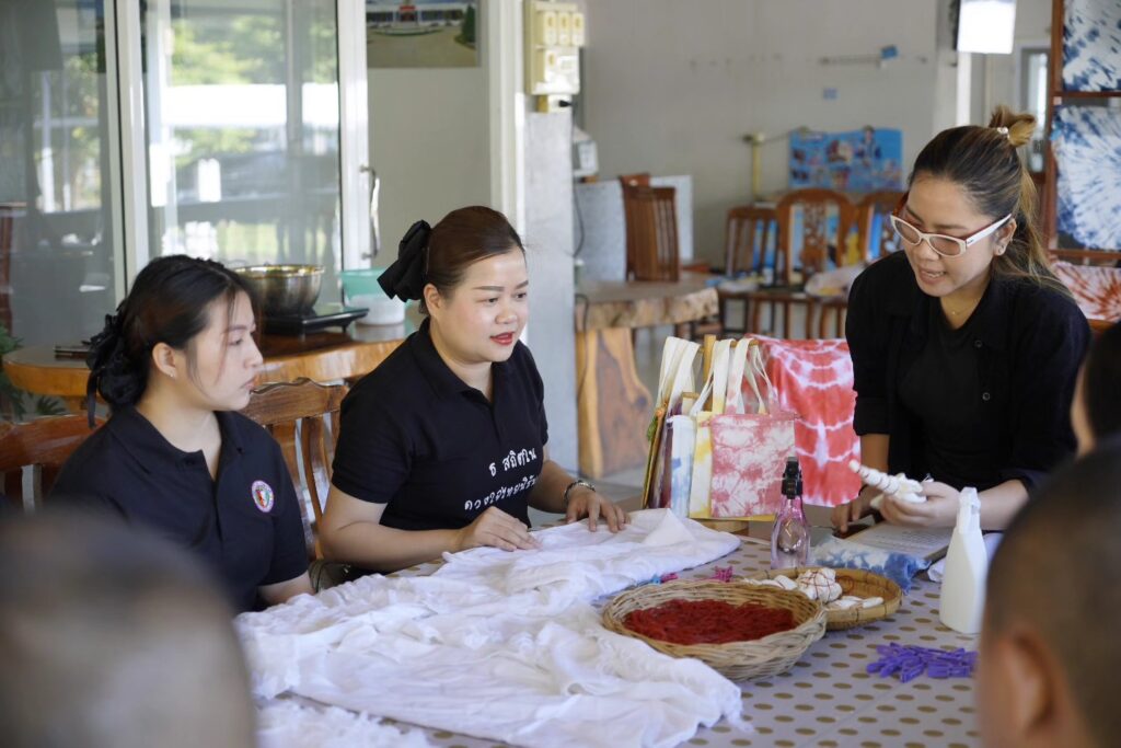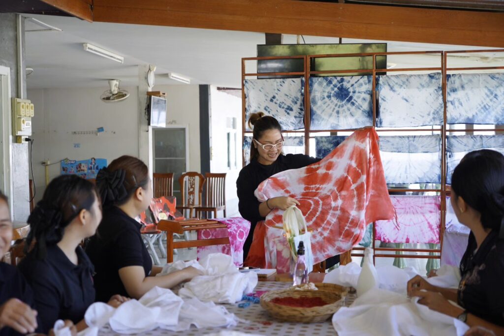 กิจกรรม workshop ผ้ามัดย้อม กับกลุ่มแม่บ้านทหารบก ร.๔ พัน ๑ จังหวัดนครสวรรค์ รับหน้าที่แนะนำการมัดย้อม เริ่มต้นด้วยการให้ความรู้การมัดย้อมเบื้องต้น ประเภทการย้อม เรียนรู้วิธีการพับ รัด มัด ให้เกิดลายต่างๆ