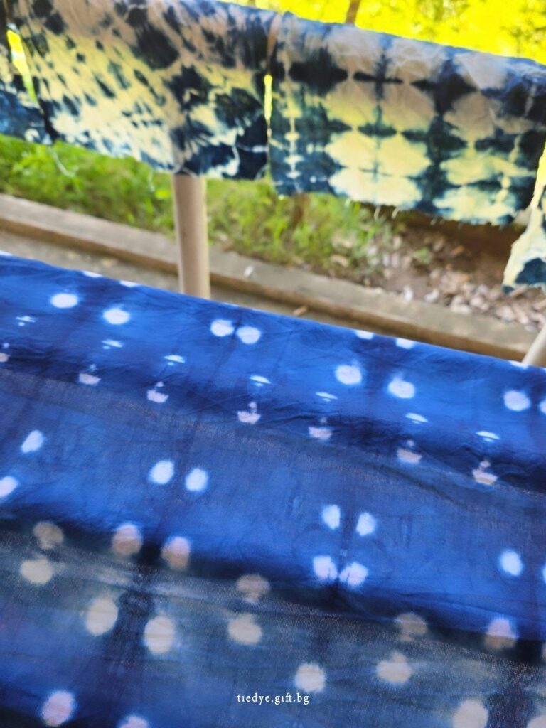 ตัวอย่างผ้ามัดย้อมคราม ที่เกิดจากการพับ การบิด การหนีบ การมัด จนเกิดลวดลายที่สวยงาม
